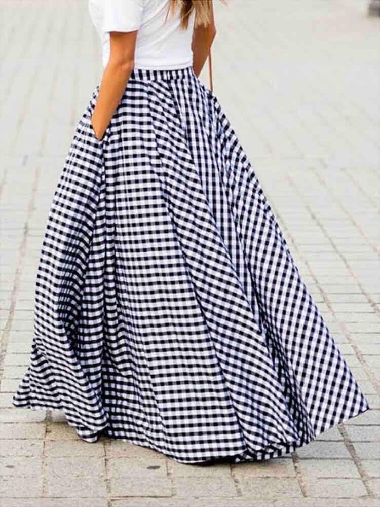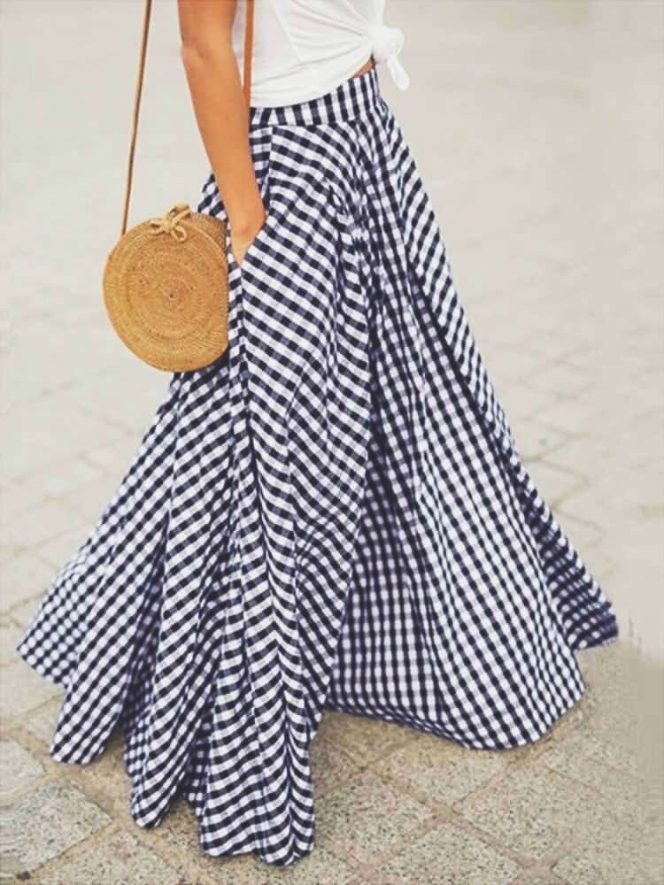 ギンガムチェック ボリュームロングスカート リラックスコーデ 大人カジュアル マキシ丈 ポケット 大きいサイズ 韓国 CH4146