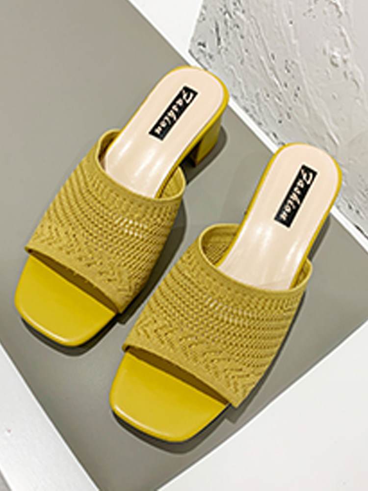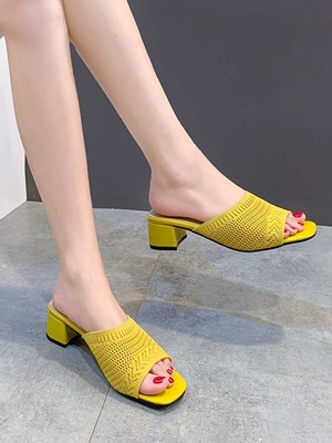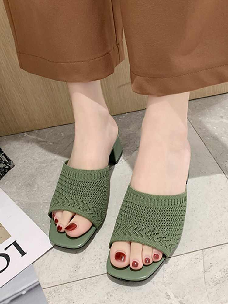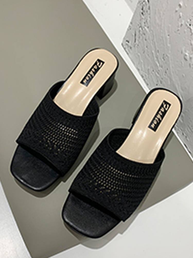 チャンキーヒールサンダル オフイス オープントゥ 透かし編み 大きいサイズ 韓国 CH4415
