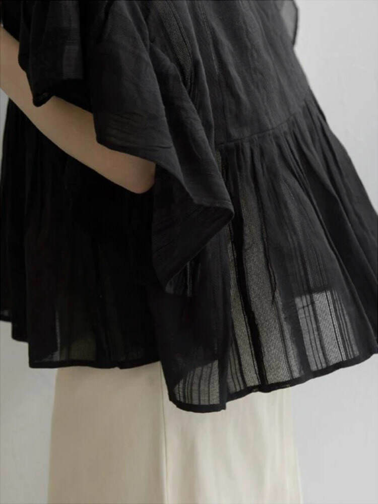 控えめな刺繍デザインやコットン生地の軽やかさが大人な雰囲気漂うブラウスです。