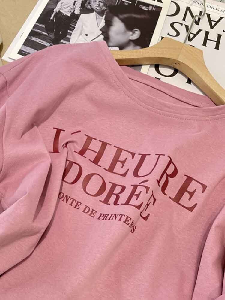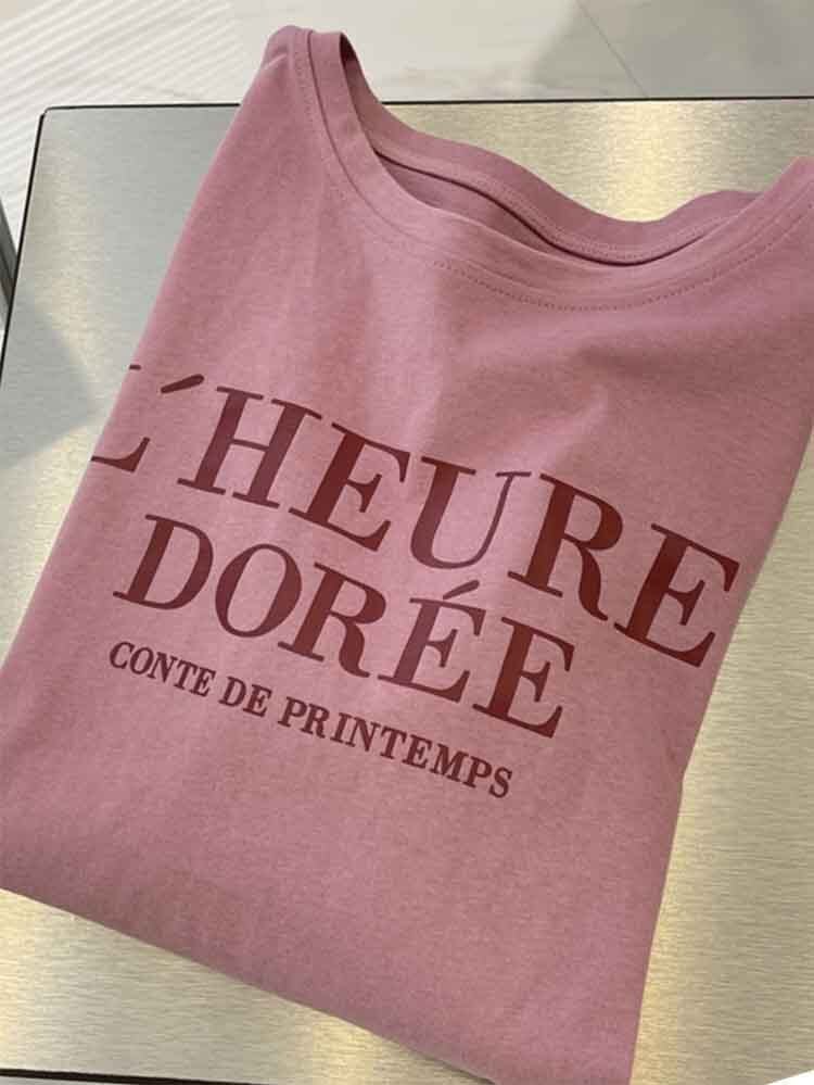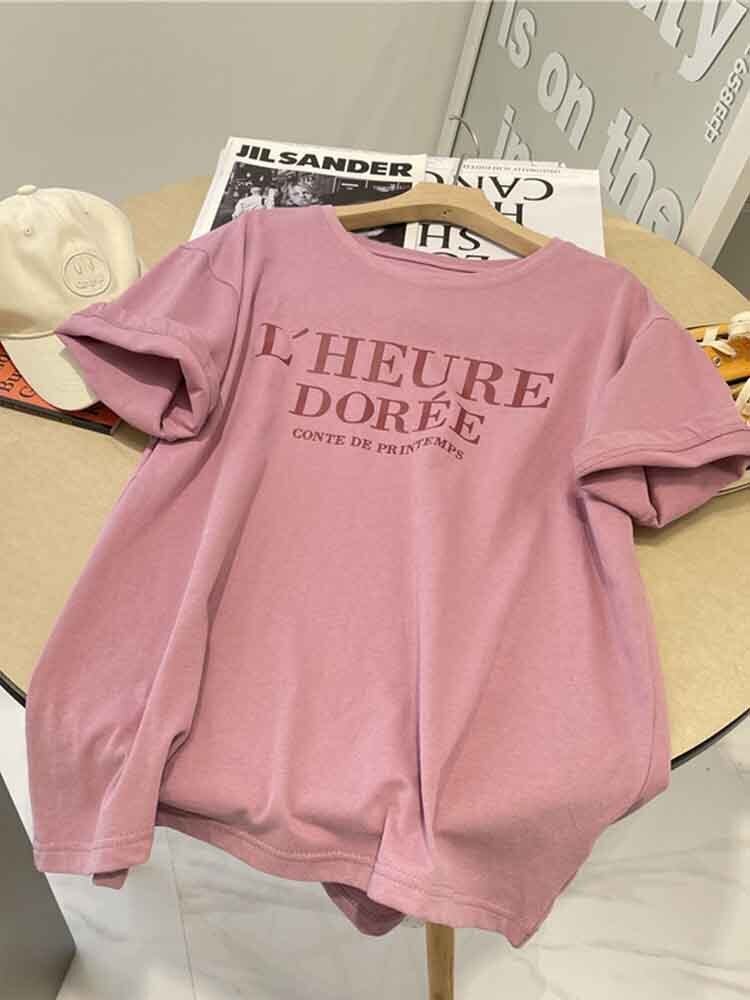 ロゴプリントカジュアル半袖Tシャツ 大人カジュアル 休日コーデ かわいい ロゴT 大きめサイズ 韓国 CH4508