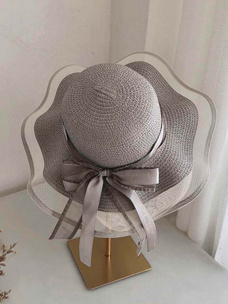 異素材ウェーブつば広麦わら帽子 リゾートコーデ お出かけ おしゃれ 人気 ストローハット 大きいサイズ 韓国 CH4595