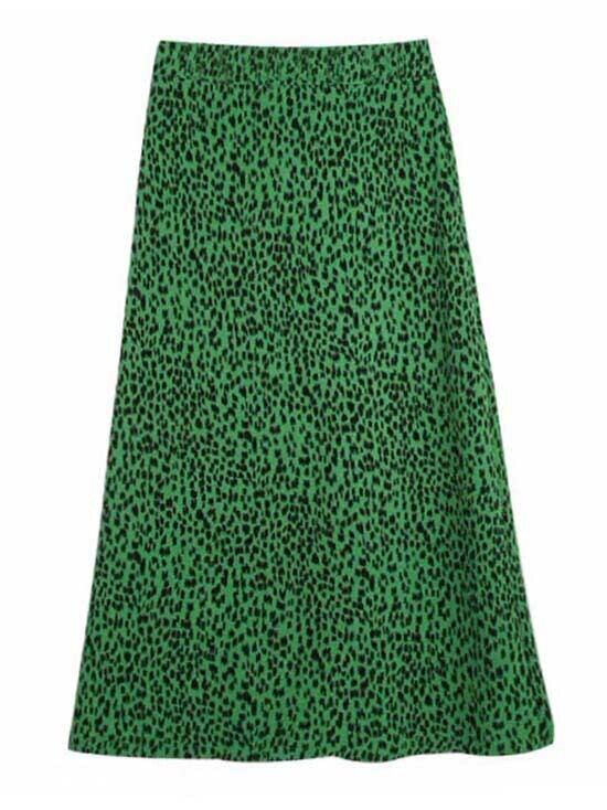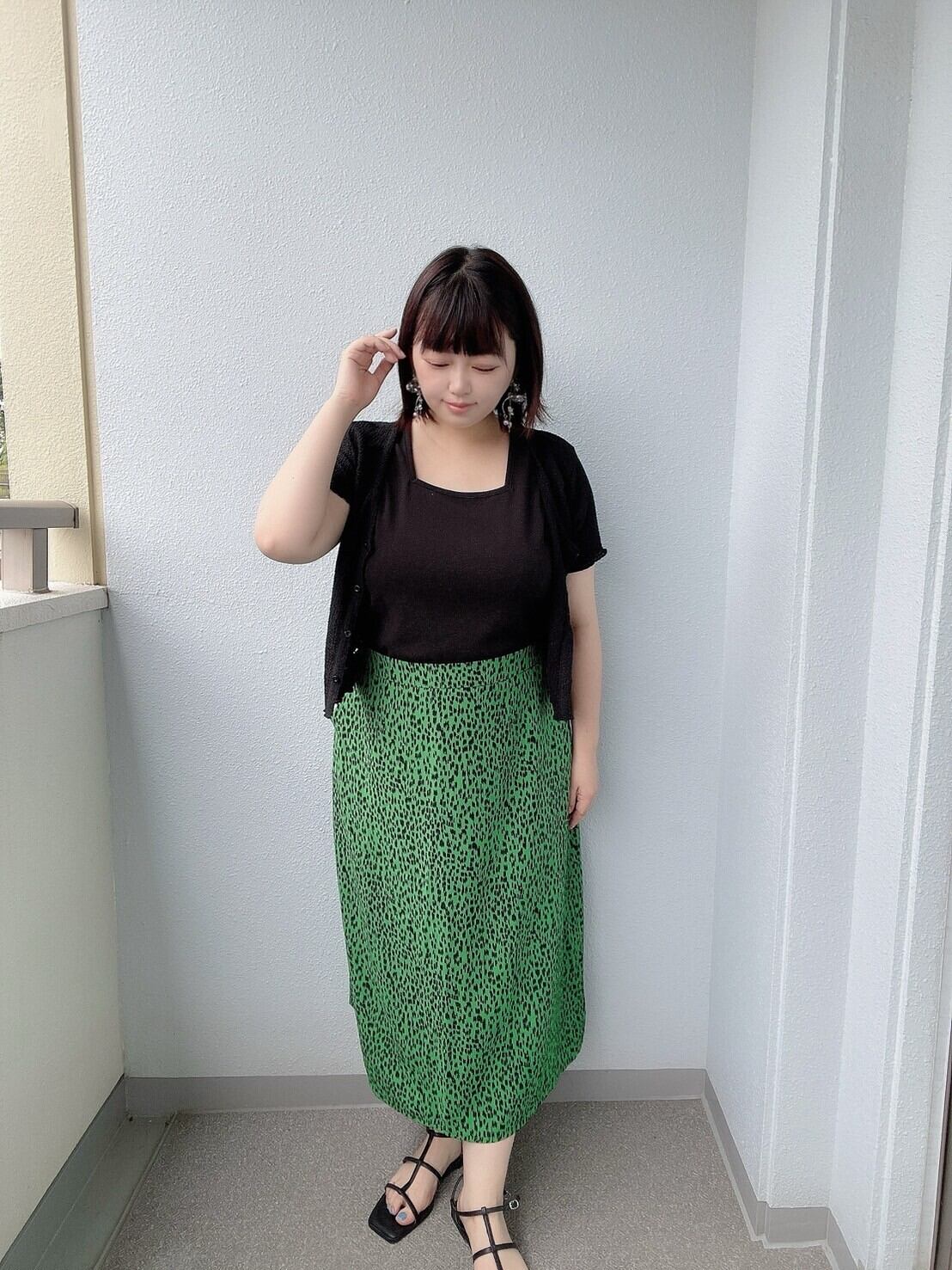 トレンドのグリーンでコーデの主役として使える!レオパード柄のスカートです。