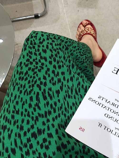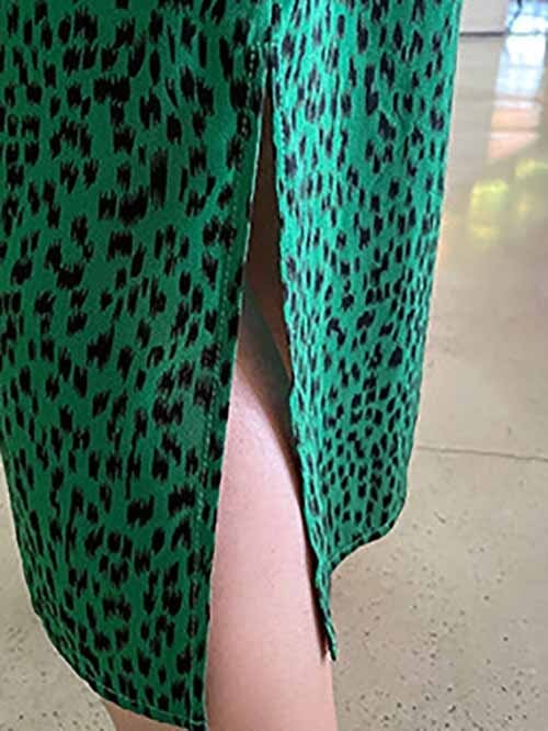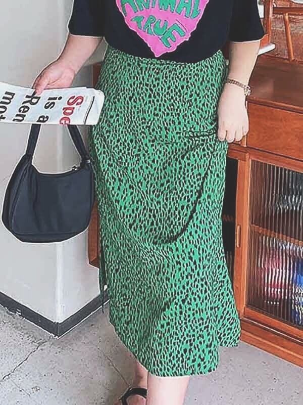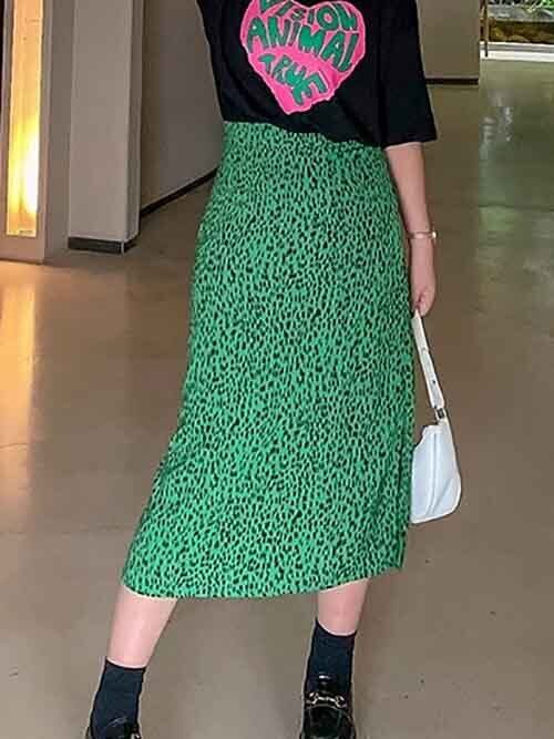 レオパード柄サイドスリットスカート 大人 トレンド ミモレ丈 アニマル柄 グリーン 大きいサイズ 韓国 CH4827