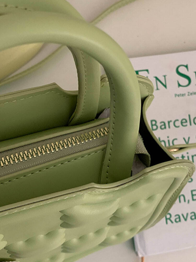 ぽこぽこ浮き出た市松模様とコロンとしたフォルムでコーデがグッとオシャレになるミニバッグです。