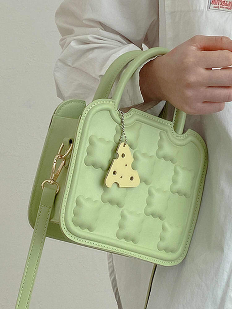 チャーム付き凹凸模様スクエアミニバッグ ハンドバッグ ショルダーバッグ かわいい おしゃれ カラバリ豊富 大きいサイズ 韓国 CH4943