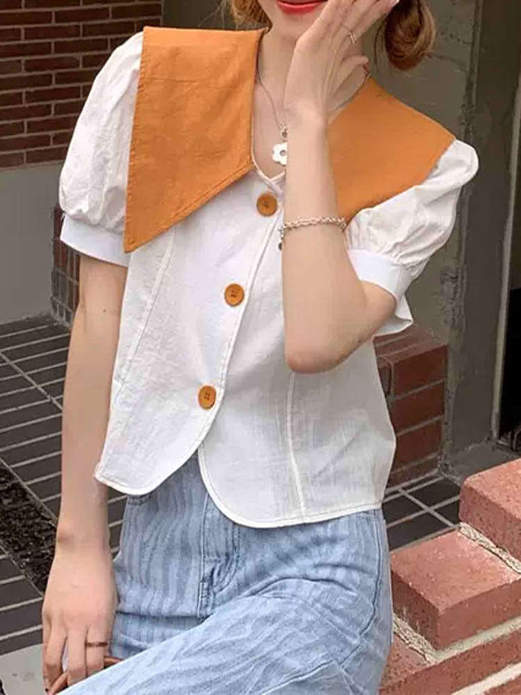 顔周りを華やかに ビッグカラーツートーンブラウス カジュアルコーデ 可愛い おしゃれ 人気 襟付き 大きいサイズ 韓国 CH4779