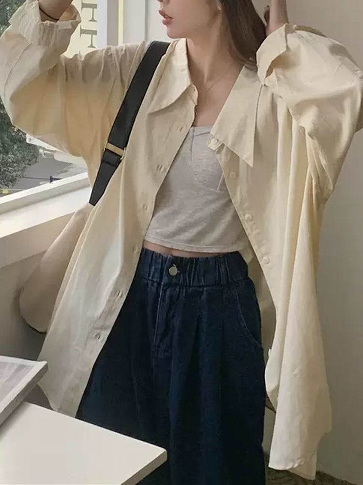 ニュアンスカラーオーバーサイズシャツ クールコーデ かわいい 人気 オフィス カジュアル 大きいサイズ 韓国 CH5050