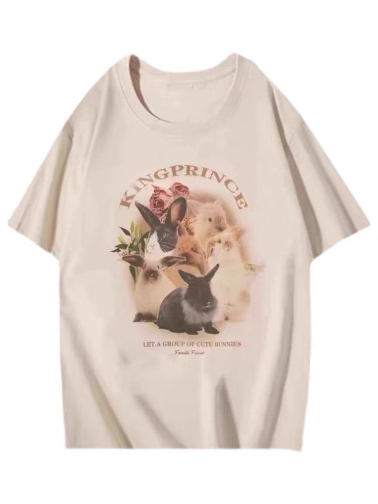 ラビットプリントTシャツ 休日コーデ カジュアル かわいい おすすめ 人気 半袖 大きいサイズ 韓国 CH5132