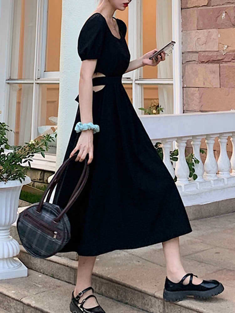 ウエストカットアウトミモレワンピース フォーマルコーデ お呼ばれ きれいめ おしゃれ エレガント 大きいサイズ 韓国 CH5141