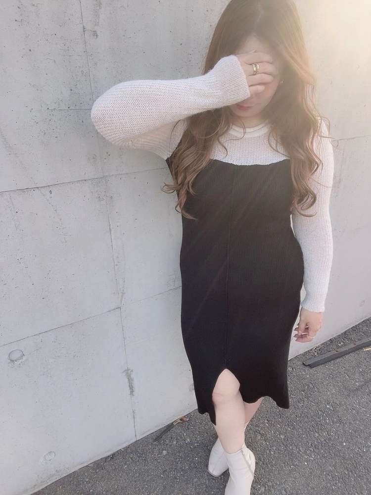 ホワイトとブラックのツートーンが大人な雰囲気満点!ロング丈ニットワンピースです。