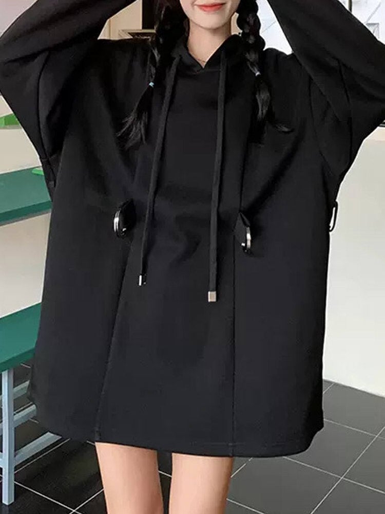 個性的女子のデザインパーカーワンピース ダブルサイドベルト付き裏起毛パーカーミニワンピース カジュアルコーデ クール かわいい フード付き 大きいサイズ 韓国 CH5469