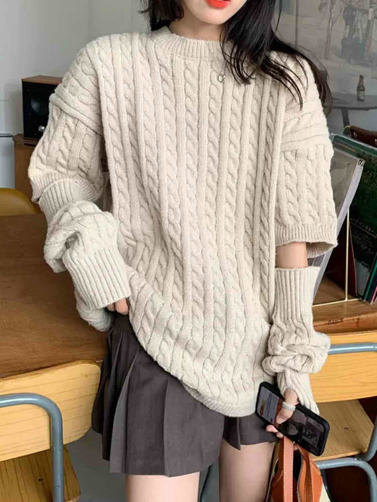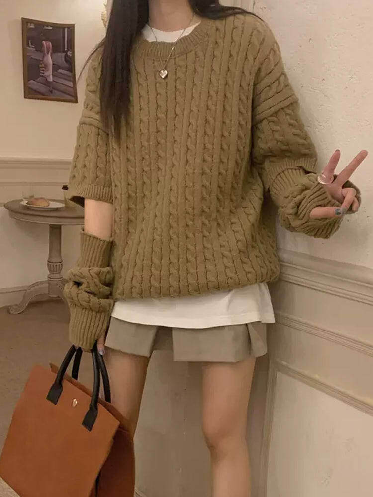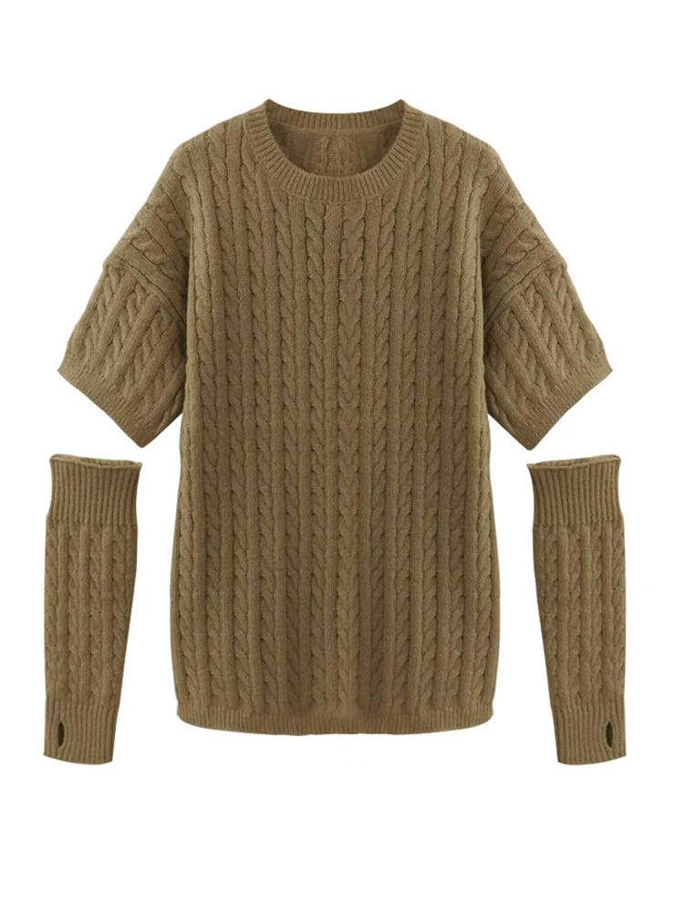 ウォームでおしゃれな新定番 アームカバー付きケーブルニットセーター トレンドコーデ ガーリー カジュアル おしゃれ 半袖 大きいサイズ 韓国 CH5763