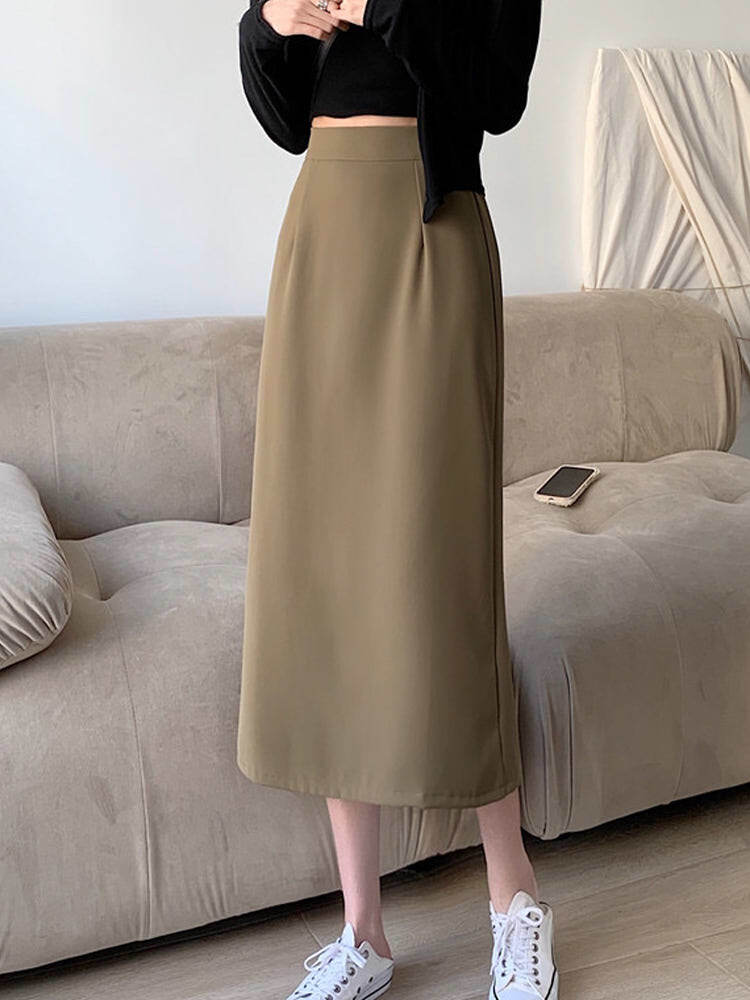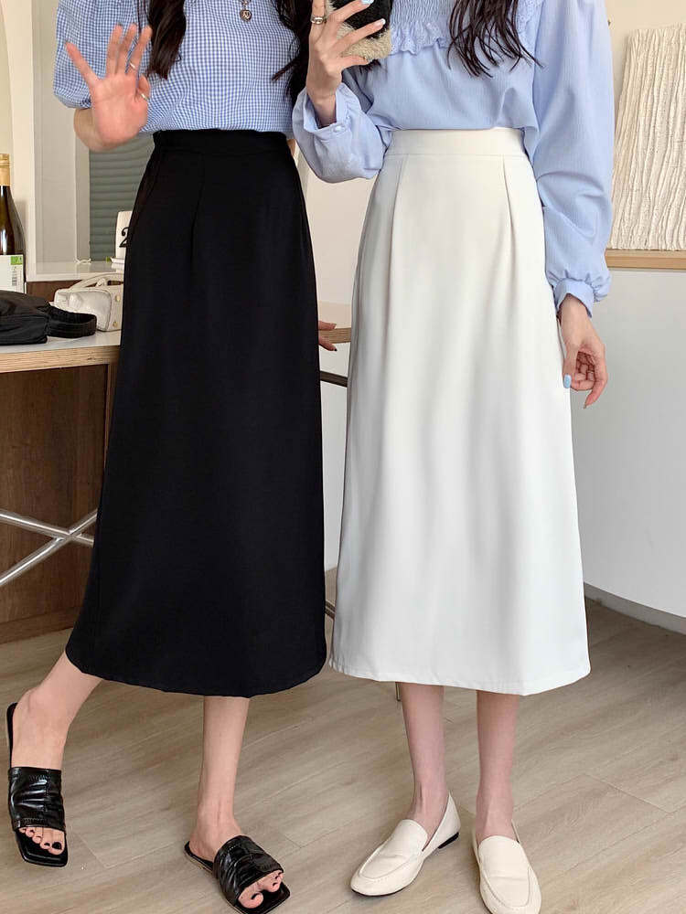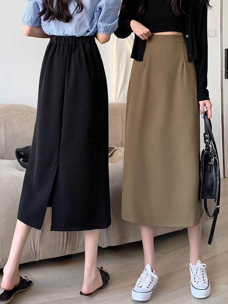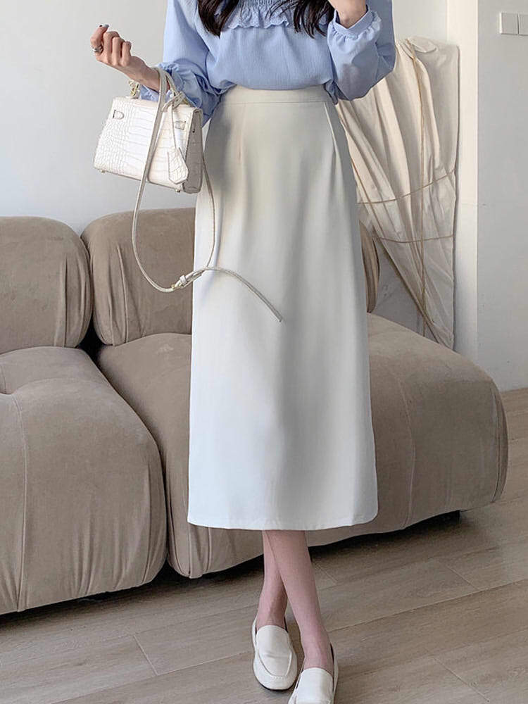 Iラインハイウエストスカート フェミニンコーデ おしゃれ かわいい オフィス お呼ばれ 大きいサイズ 韓国 CH5733