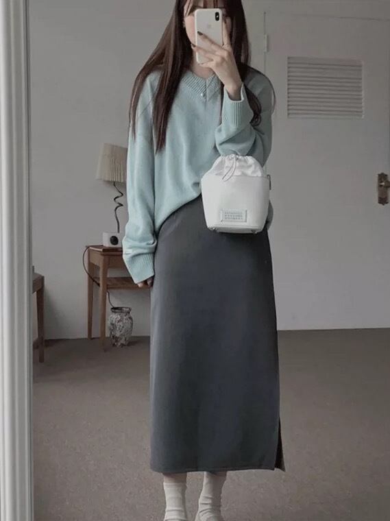 カジュアルとセクシーを両立 サイドスリットロングタイトスカート オフィスコーデ きれいめ 大きいサイズ 韓国 CH5751