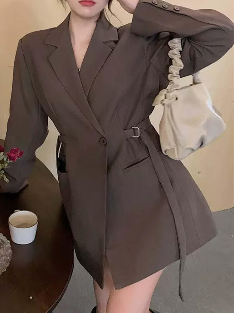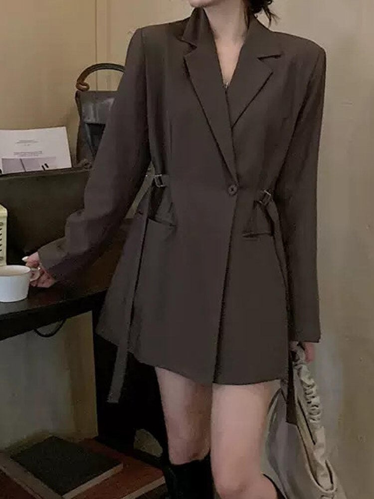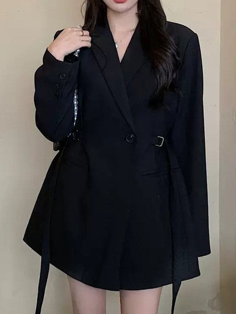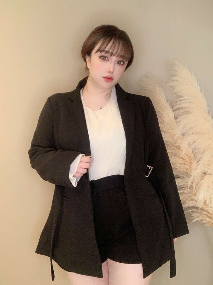 ダブルサイドベルト付きジャケット きれいめコーデ クール モード おしゃれ Vネック 大きいサイズ 韓国 CH5580