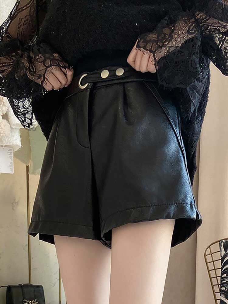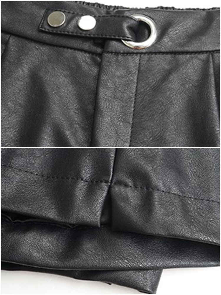 フェイクレザータックショートパンツ キュロット 休日コーデ 大人 かっこいい 黒 大きいサイズ 韓国 CH5922