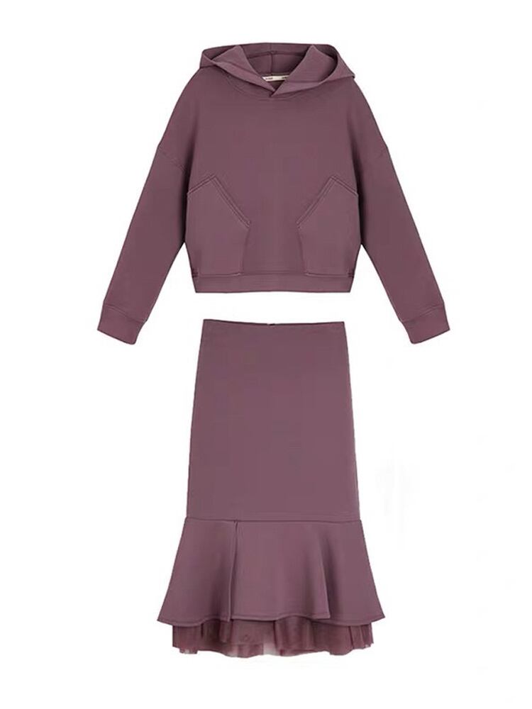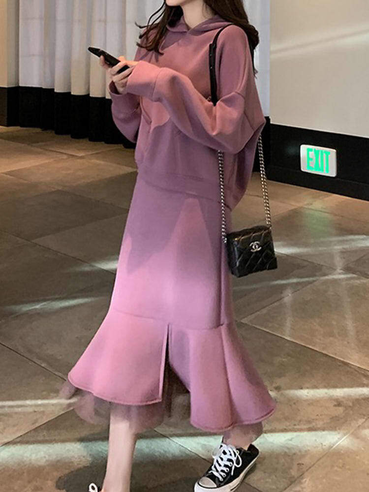 "ドロップショルダーパーカー×チュールアクセントマーメイドスカート 上下セット"