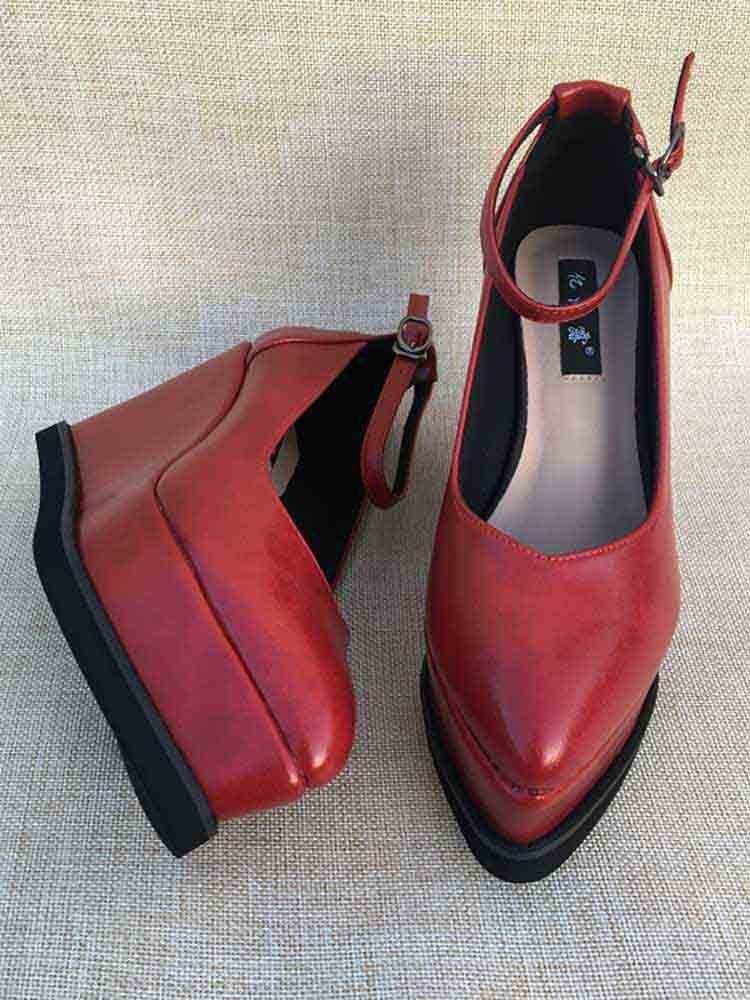 厚底ウェッジソールストラップパンプス デート お出かけ かわいい きれいめ ポインテッドトゥ 大きいサイズ 韓国 CH5592