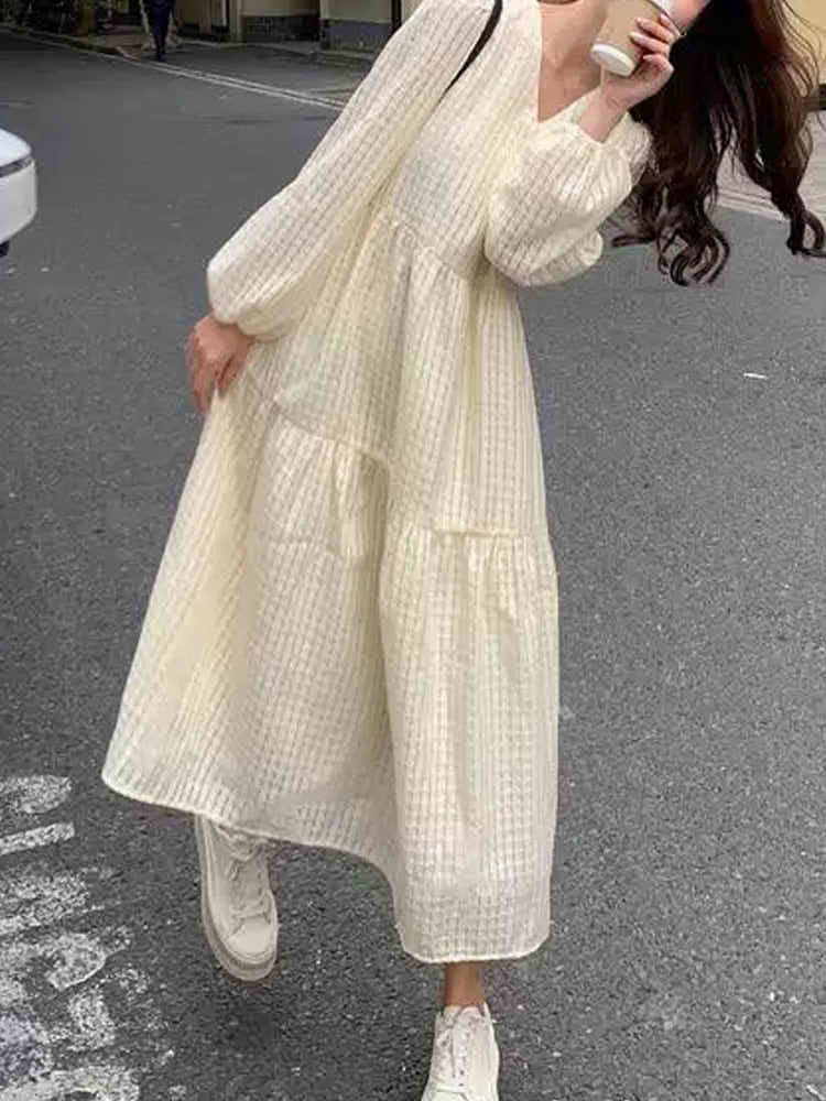 チェック柄シフォンティアードワンピース ガーリーコーデ フェミニン かわいい 人気 チェック柄 大きいサイズ 韓国 CH6291
