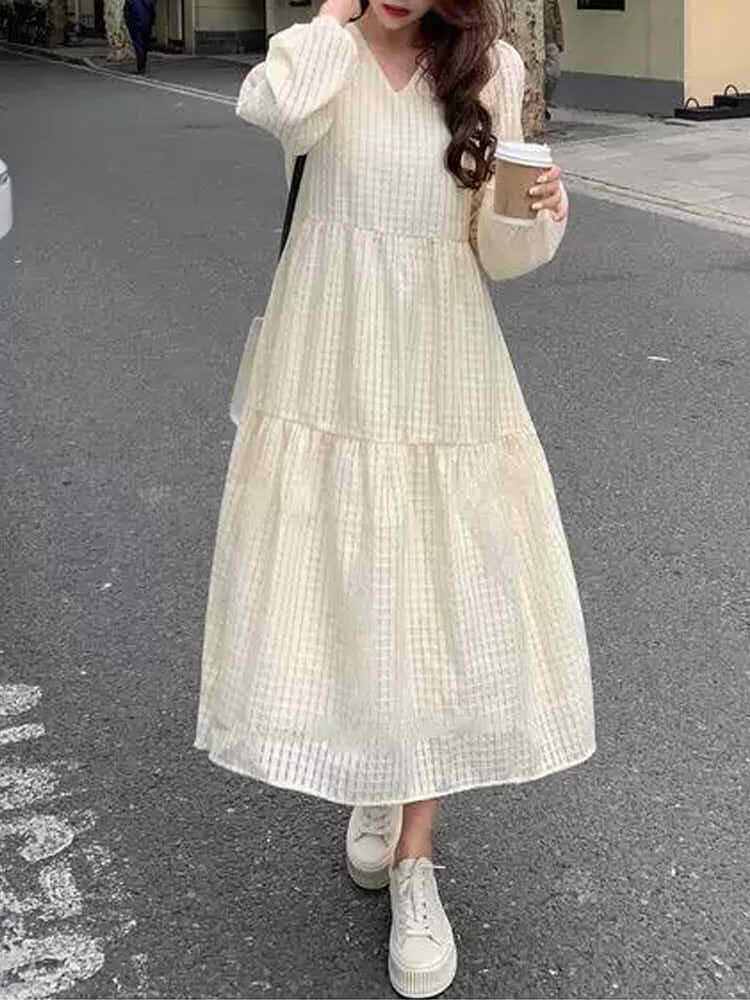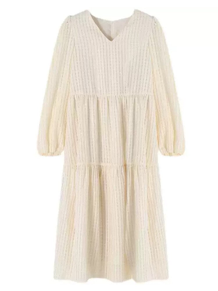ふんわりしたAラインのティアードは、ウエストから足元までのボディラインを拾わず体型カバー効果抜群!
