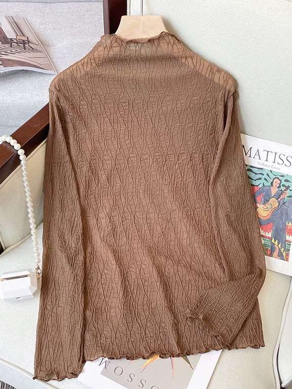 くしゅくしゅモックネックシアーシャツ 長袖 おしゃれ きれいめ 大きいサイズ 韓国 CH6843
