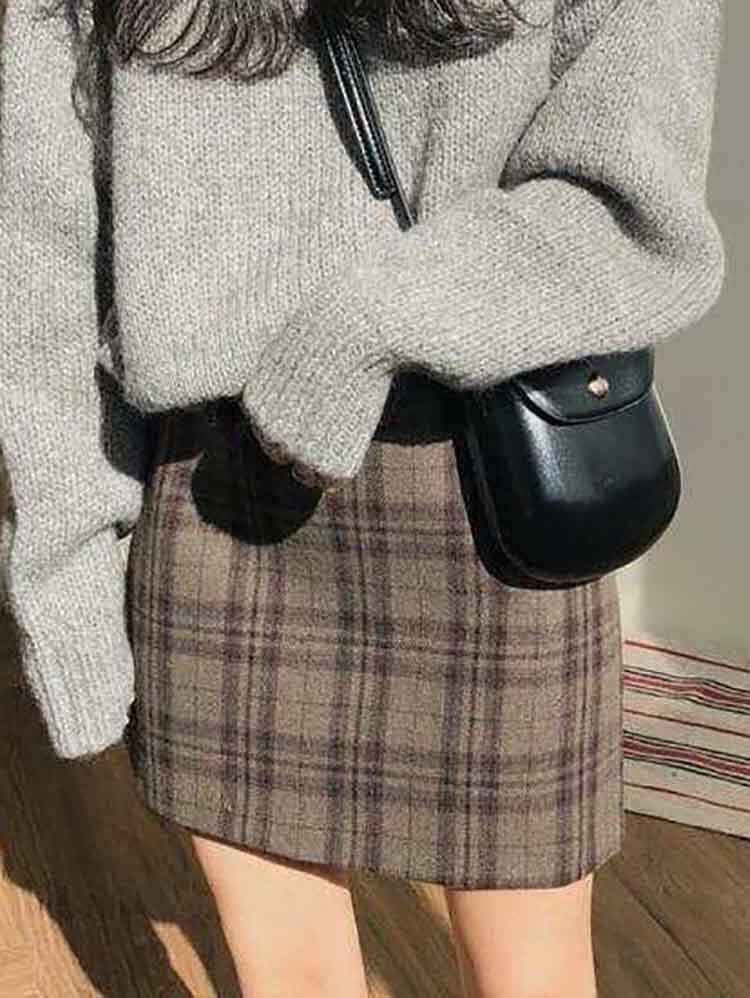 ブーツと相性抜群!人気のミニスカート♡落ち着いたブラウンのチェック柄が秋冬コーデにぴったりのアイテムです!