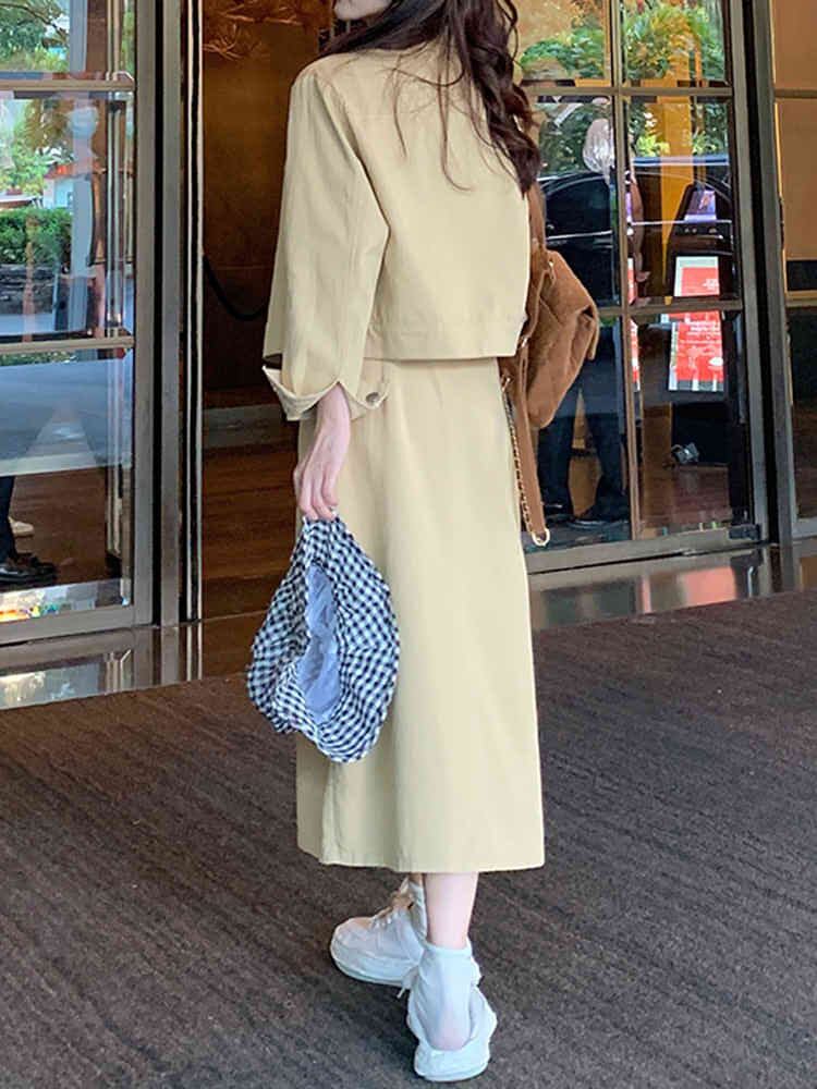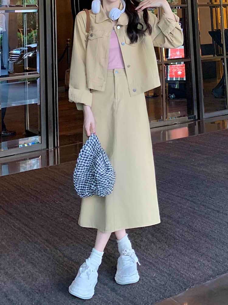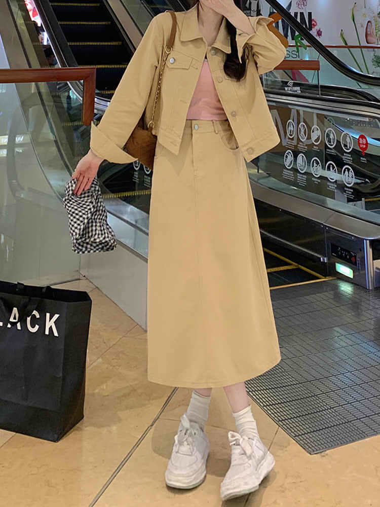 ショートデニムジャケット×台形デニムスカート セットアップ カジュアルコーデ おしゃれ 大きいサイズ 韓国 CH6862