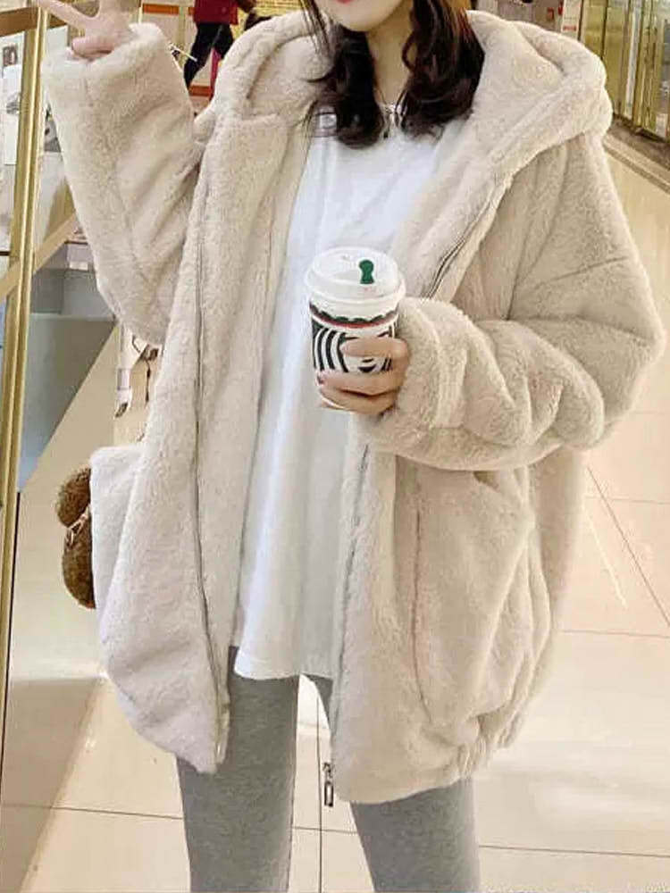 もこもこジップアップパーカー カジュアルコーデ かわいい ガーリー 人気 あたたか 大きいサイズ 韓国 CH6729