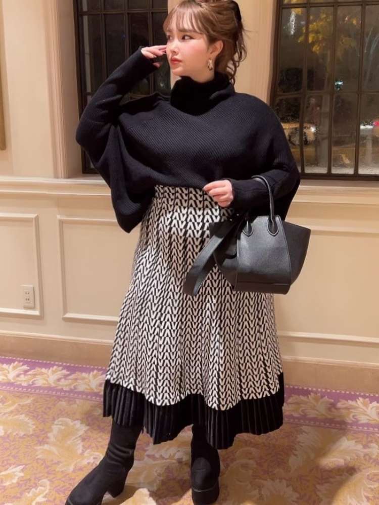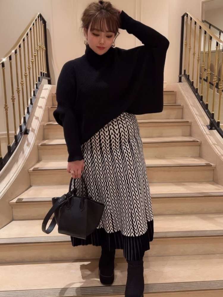 使い回しの効くブラックのタートルネック。シンプルながらも個性的なデザインで他と差をつけられるオススメアイテムです!