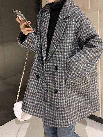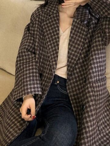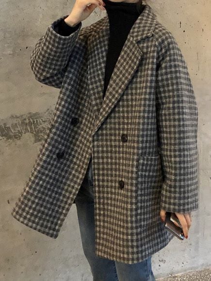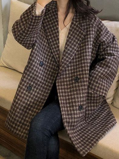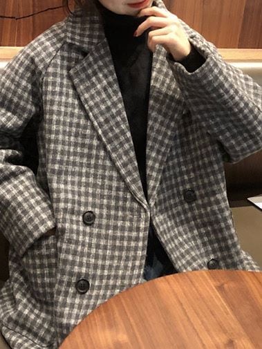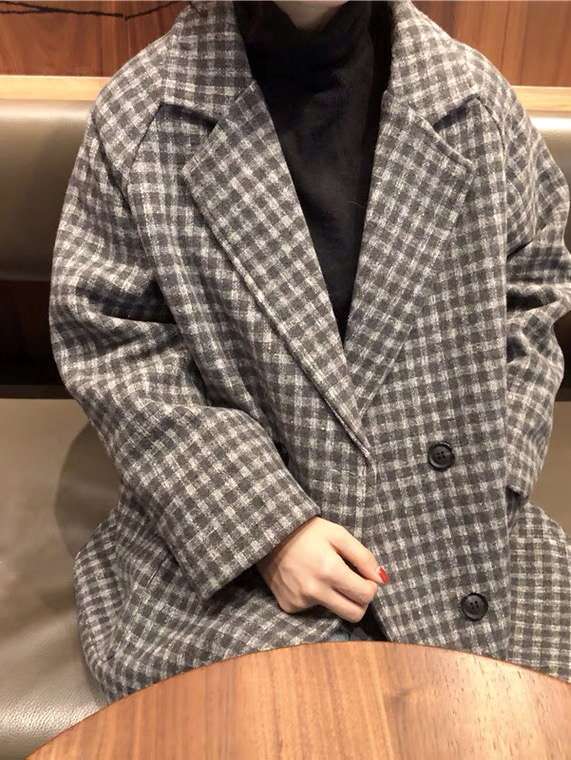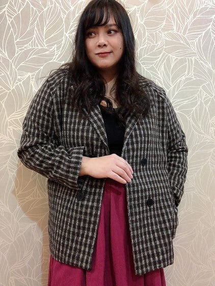 かすれチェック柄ショートコート ラグランスリーブ マニッシュ 大きいサイズ 韓国 CH6921