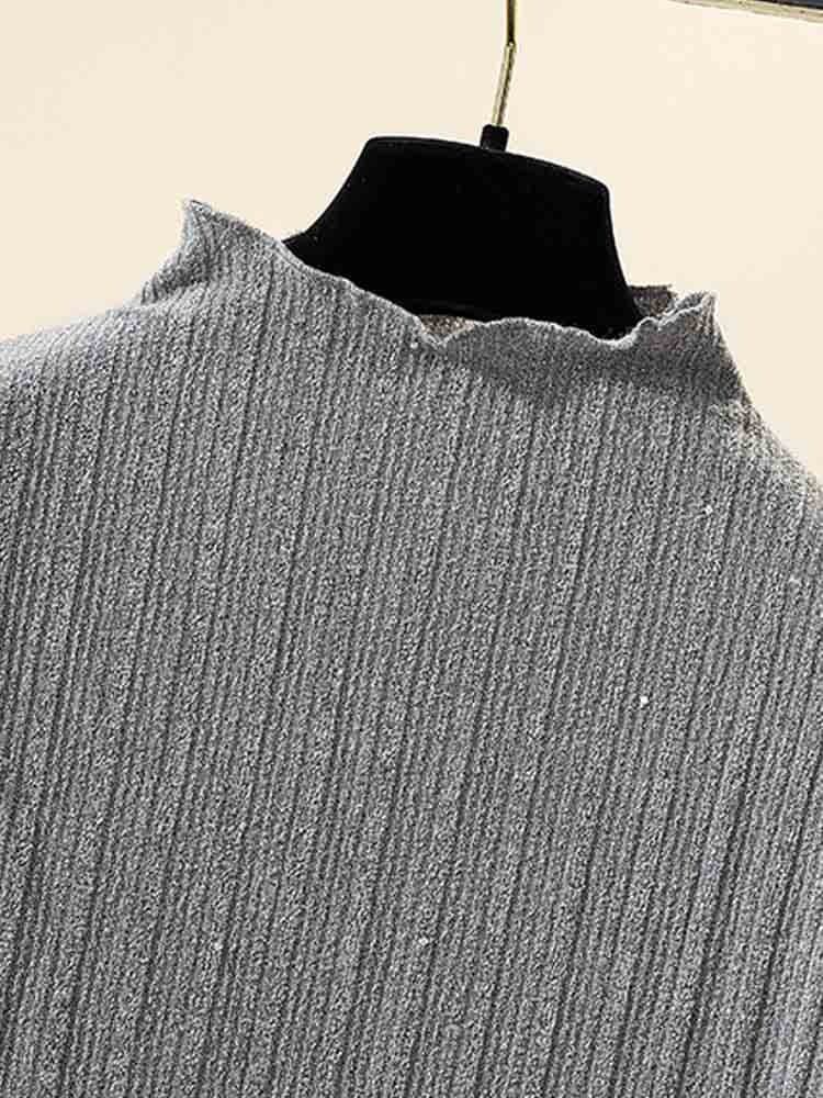 こなれた女性らしさを演出するモックネックで顔まわりがスッキリしますね♪