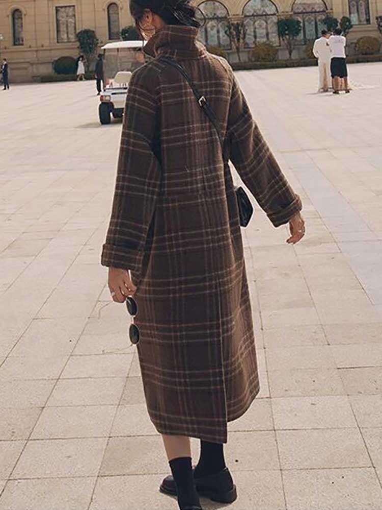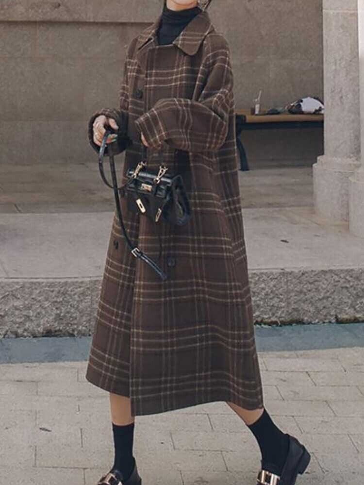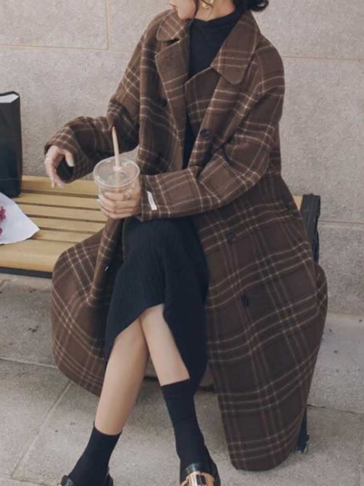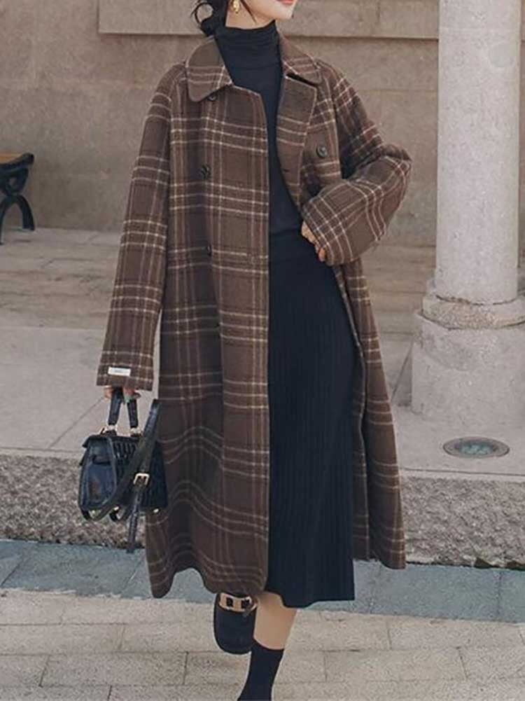 チェック柄ダブルボタンステンカラーコート 大人カジュアル レトロ かわいい 柄 ロング 大きいサイズ 韓国 CH6955