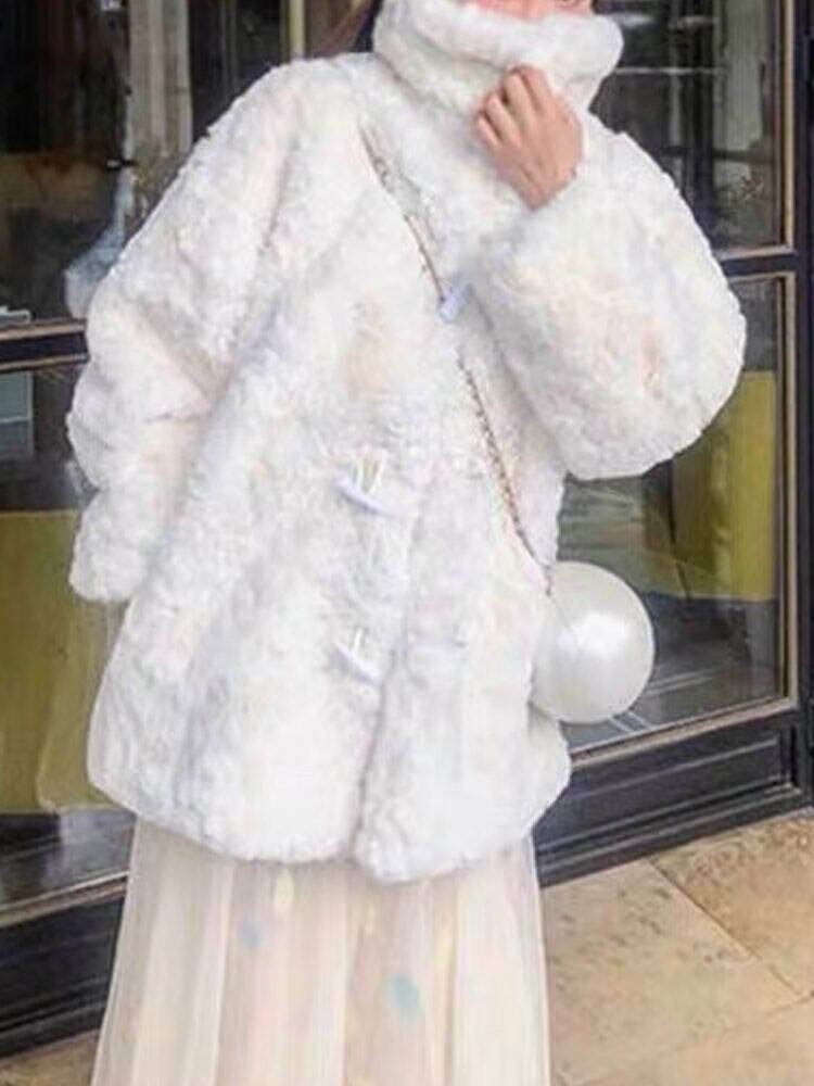 エンボスファートグルボタンコート エレガントコーデ 大人かわいい もこもこ 秋冬 大きいサイズ 韓国 CH6984