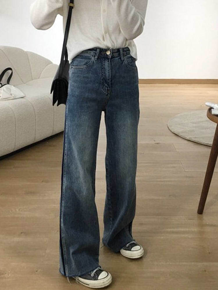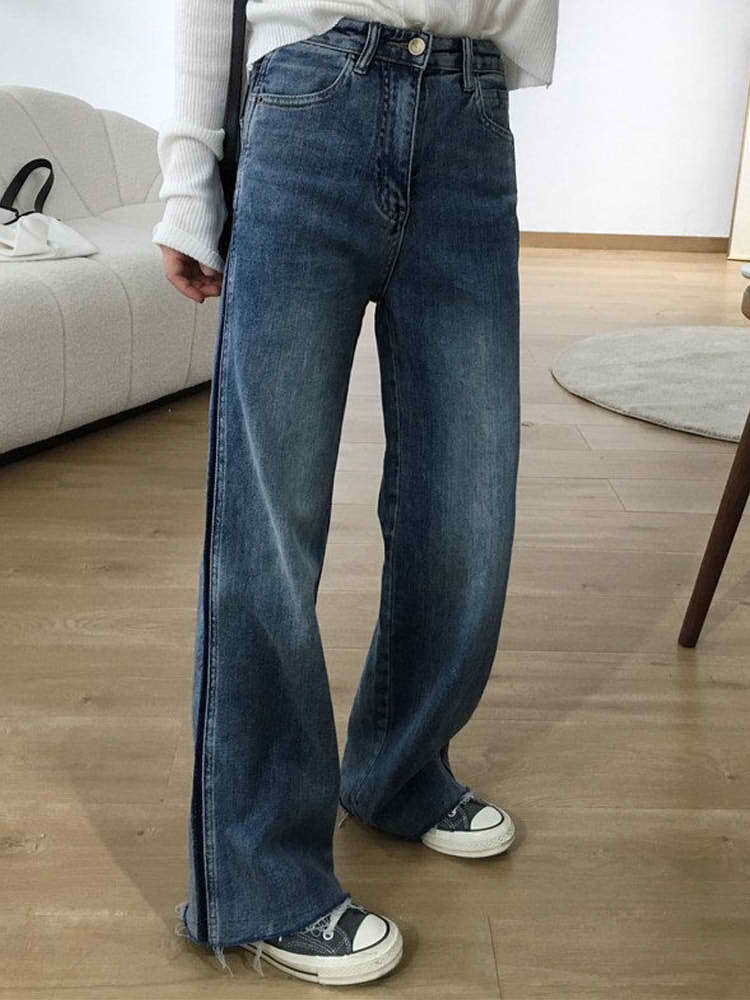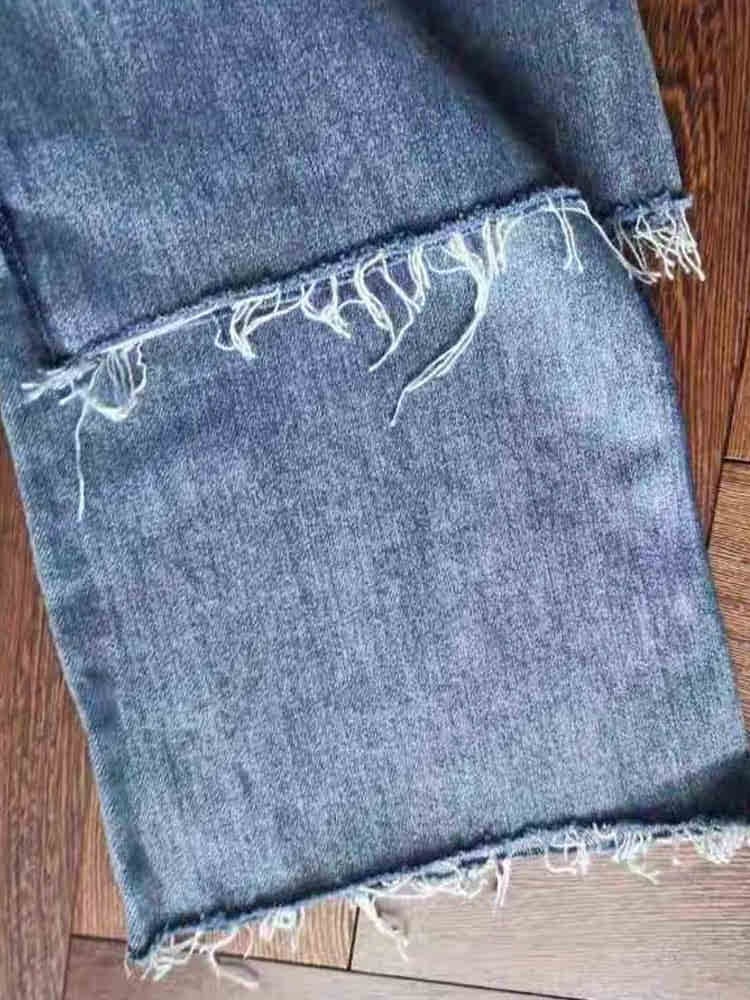サイドラインアクセントデニムパンツ カジュアルコーデ ストリート メンズライク かっこいい 切りっぱなし 大きいサイズ 韓国 CH7001