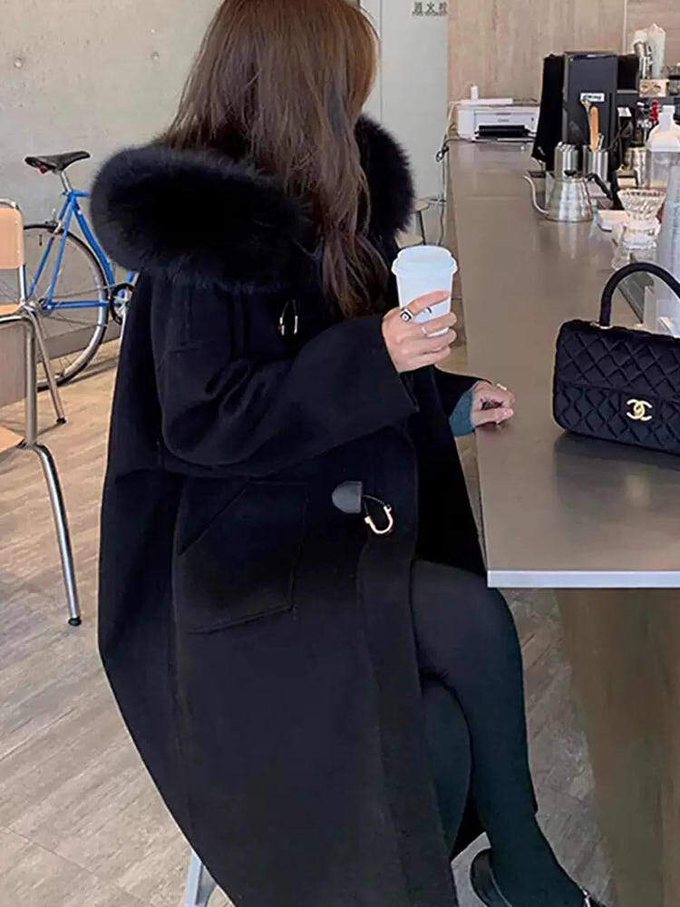 ファーアクセント付きダッフルコート エレガントコーデ おしゃれ 暖かい 秋冬 大きいサイズ 韓国 CH7011