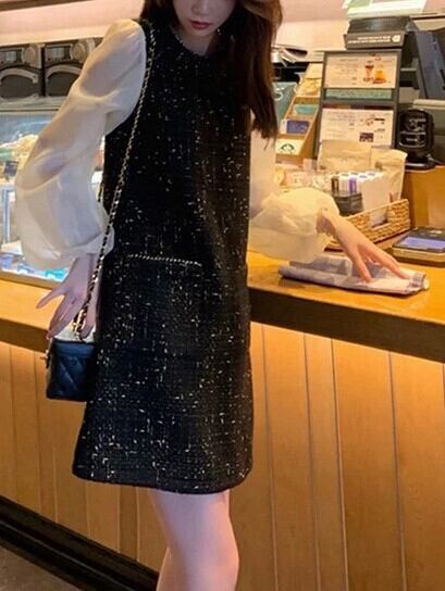 【再登場】バルーンスリーブドッキングミニワンピース 可愛い 大きいサイズ 韓国 CH7079