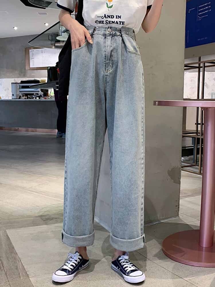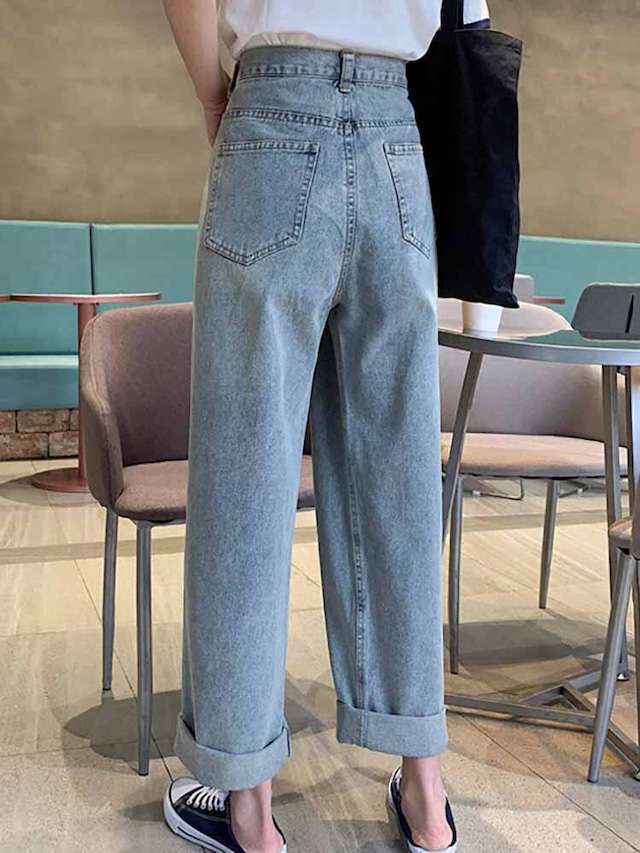 デニム ボトムス ストレート ワイドパンツ ハイウエスト シンプル 無地 大きいサイズ 韓国 CH7103