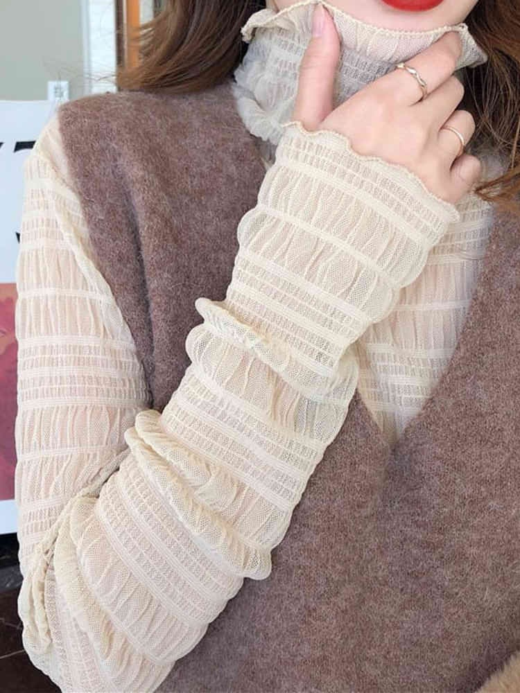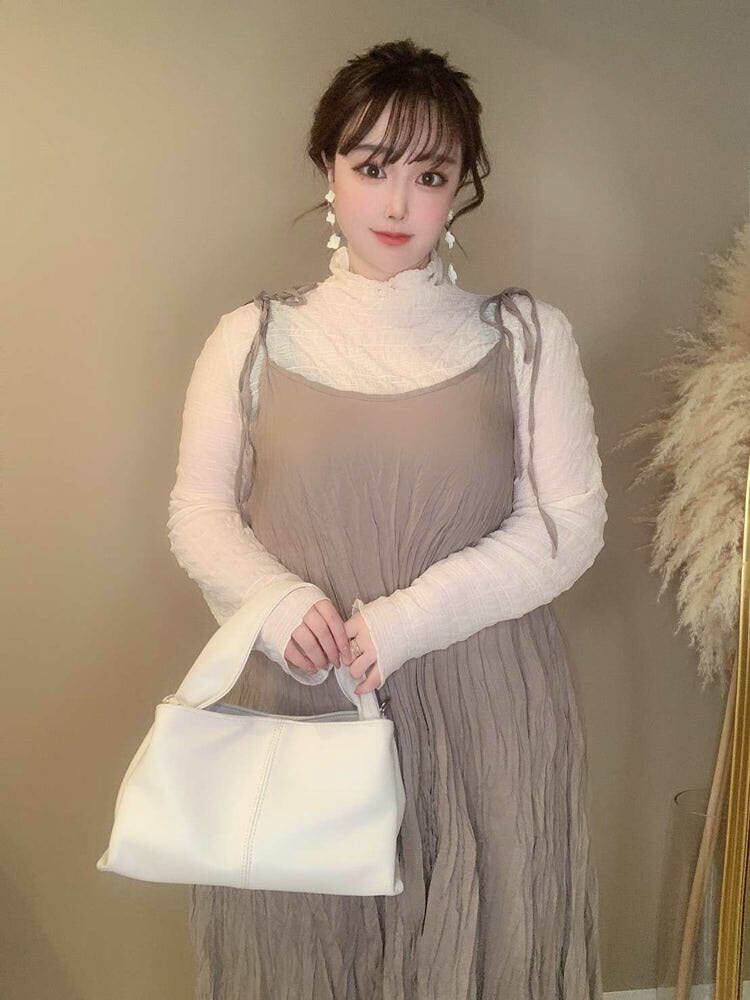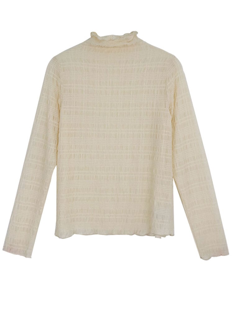 上品な透け感とぽこぽこしたシルエットが大人かわいい♡チュールハイネックトップスです。