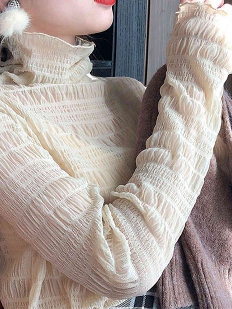 着回し簡単シンプル女子のくしゅっとタートルネック シアータートルネックブラウス きれいめコーデ シンプル セクシー 無地 プチプラ 大きいサイズ 韓国 CH7126