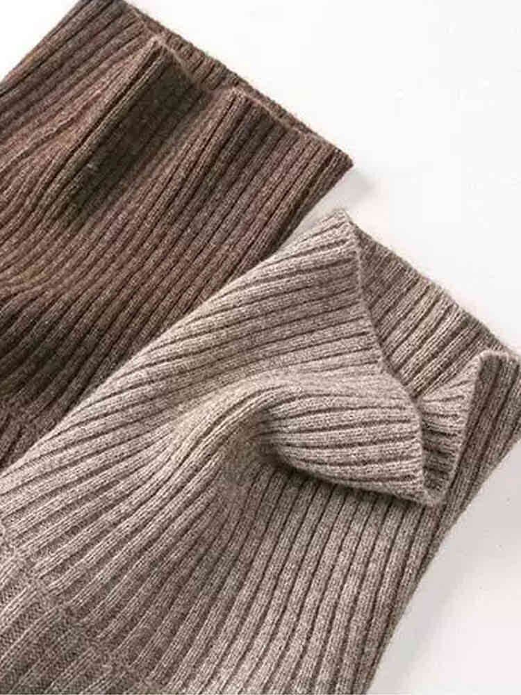 タートルネックとリブ編みで目線が上がるので、お腹周りのボディラインをぼかしてくれますよ◎