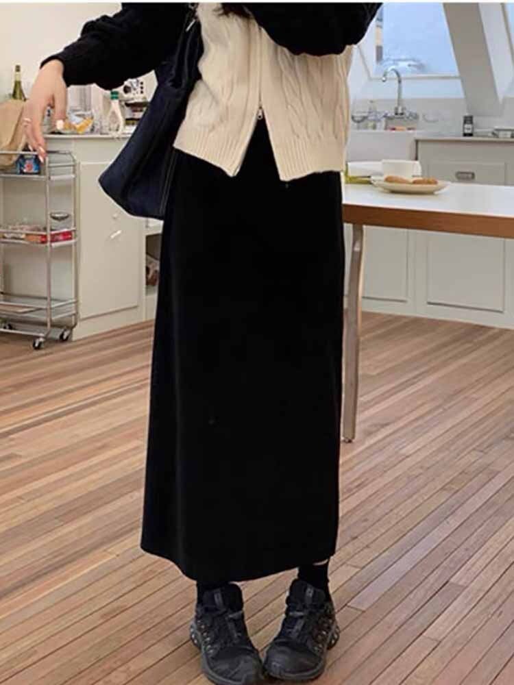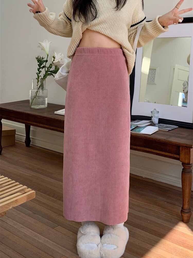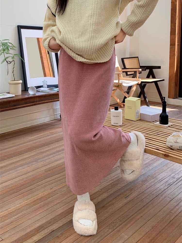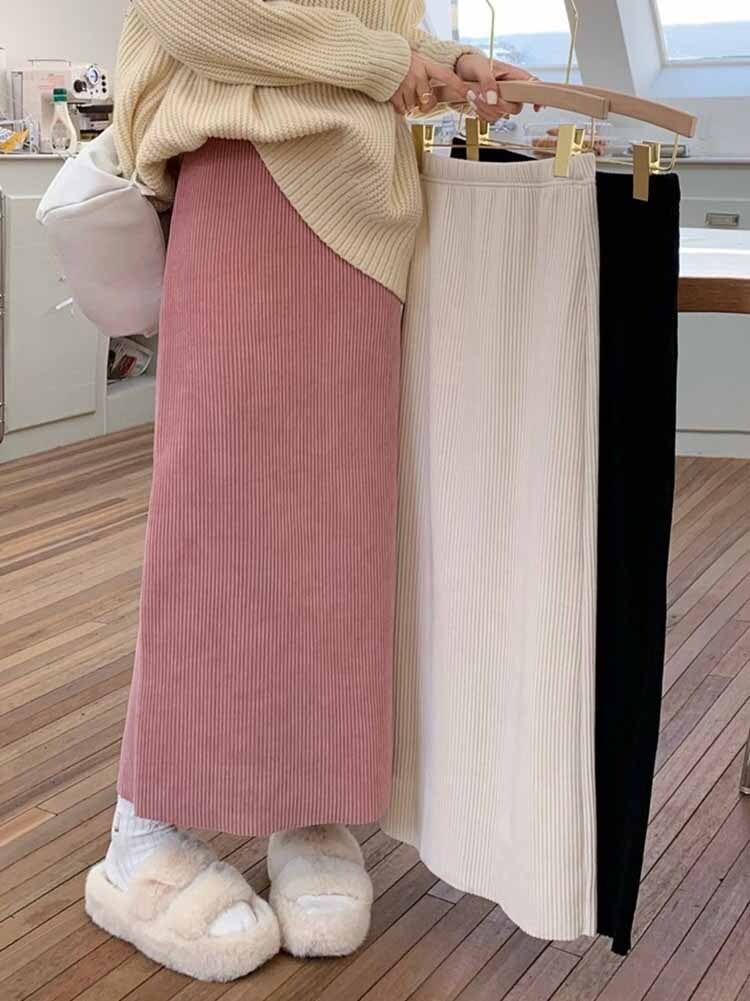 リブニットミディアム丈ストレートスカート カジュアル シンプル タイトスカート ニットスカート プチプラ 大きいサイズ 韓国 CH8103
