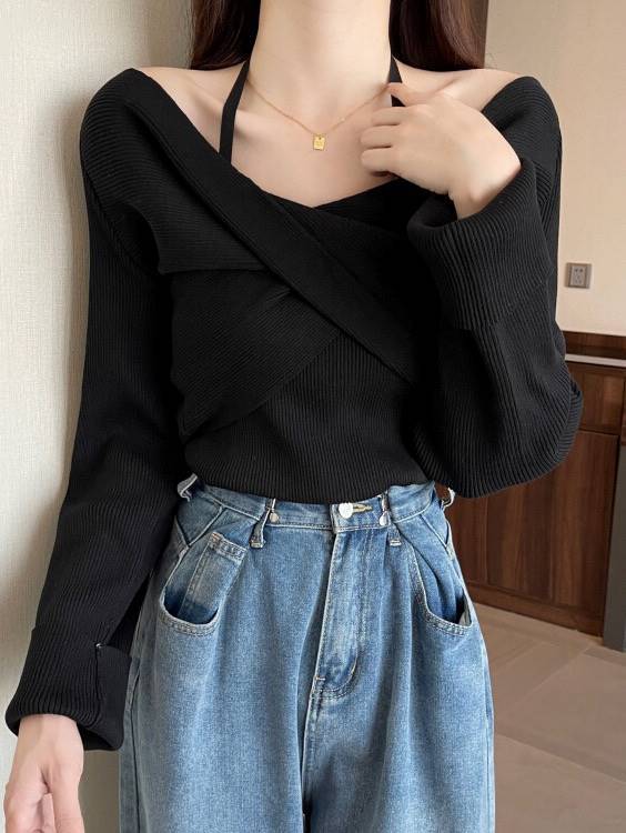 2way ホルターネックフロントツイストニット オフショルダー おしゃれ かわいい 大きいサイズ 韓国 CH8095