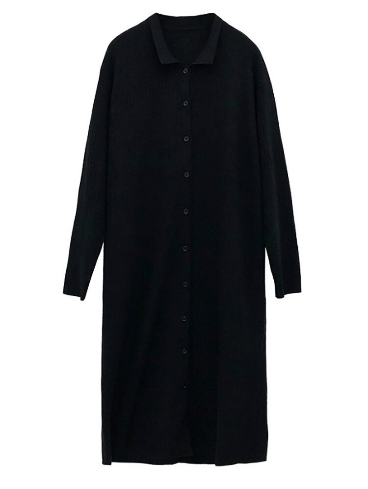 襟付きリブニット前開きワンピース きれいめ シンプル 定番 黒 ロングカーデ 大きいサイズ 韓国 CH8127