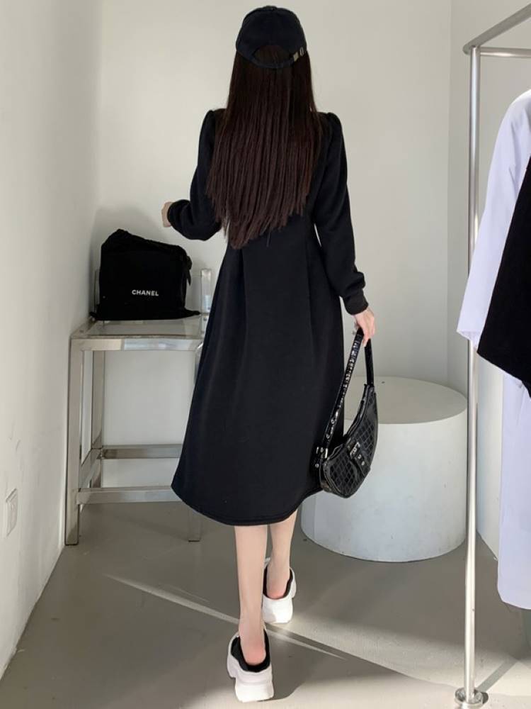 ハーフジップワンピース ハートチャーム ミディアム丈 無地 カジュアル 大きいサイズ 韓国 CH8172
