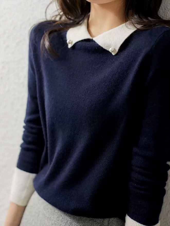 パール飾り襟付きニット バイカラー おしゃれ きれいめ オフィス コーデ CH8266