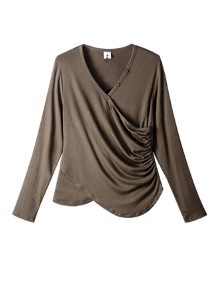 ヘンリーネックカットソー フロントクロス クールコーデ かっこいい 大人きれいめ ギャザー プチプラ 大きいサイズ 韓国 CH8250