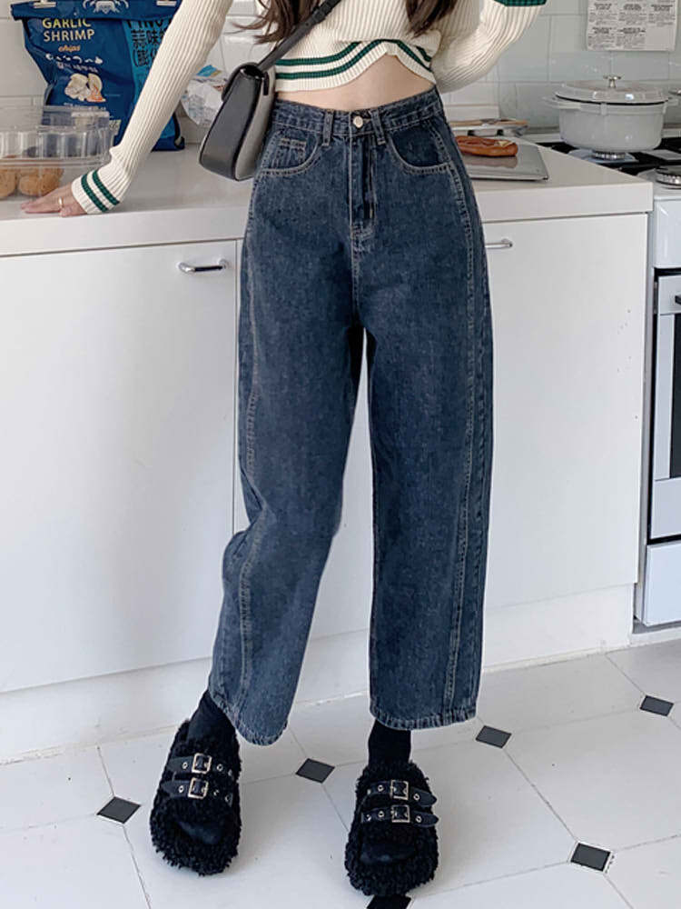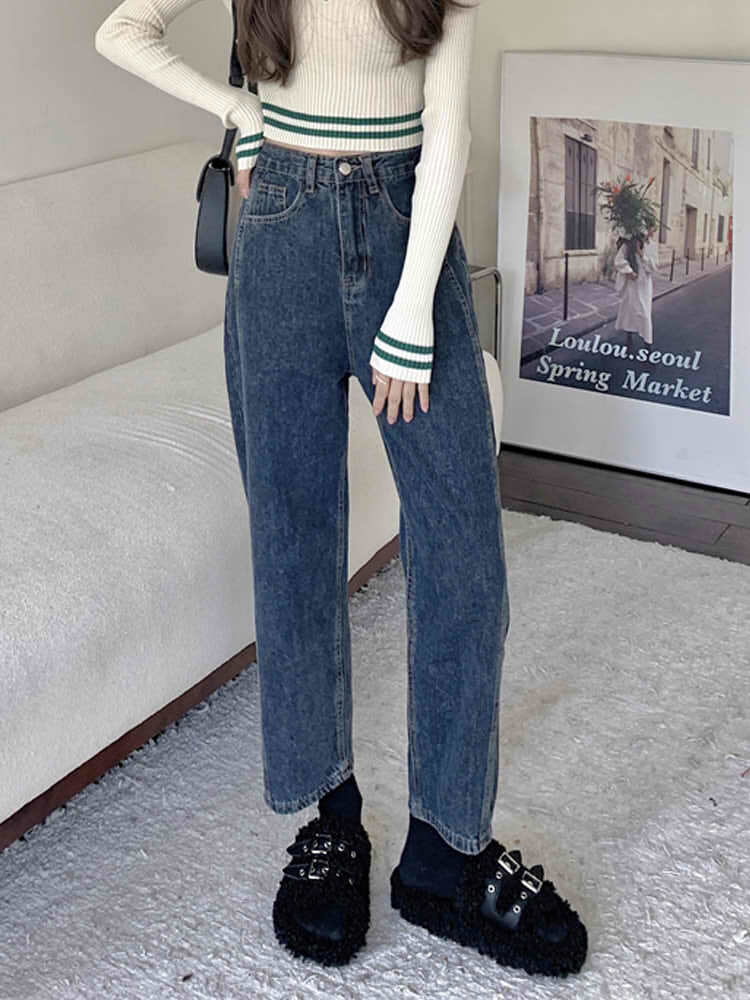 アンクル丈ストレートジーンズ カジュアルコーデ クール シンプル かわいい プチプラ 大きいサイズ 韓国 CH8296