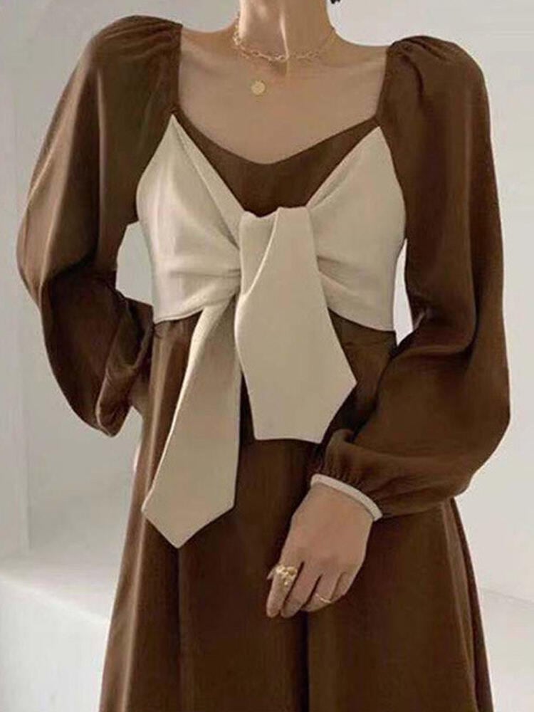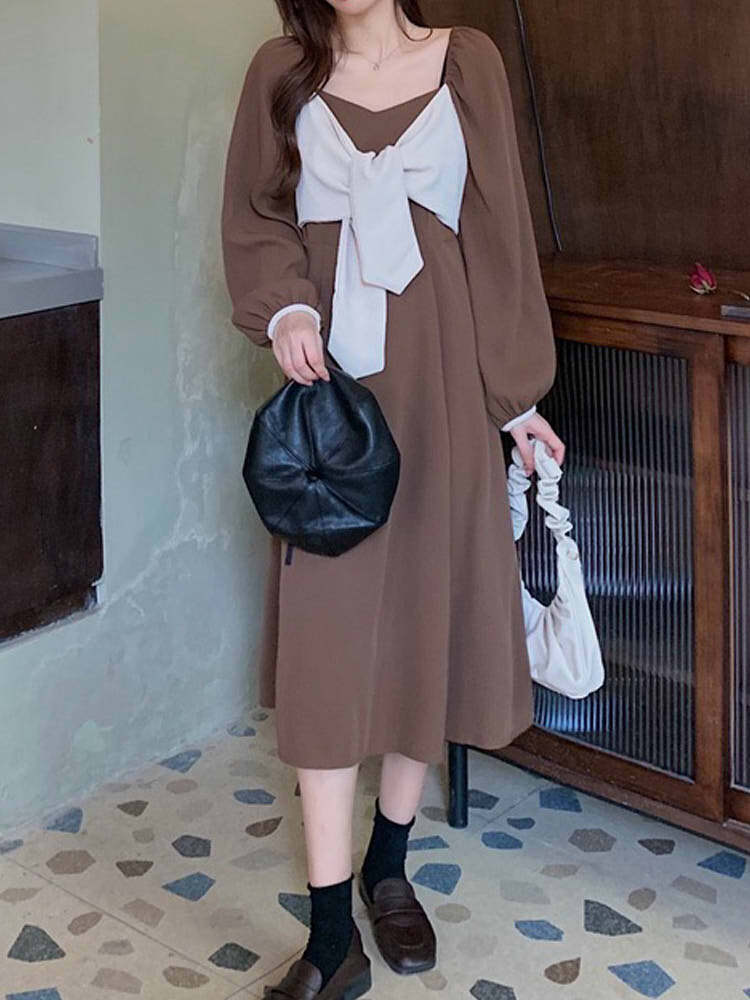 胸元で好きな形に結べるスカーフ風リボンがとても目を惹くデザイン!