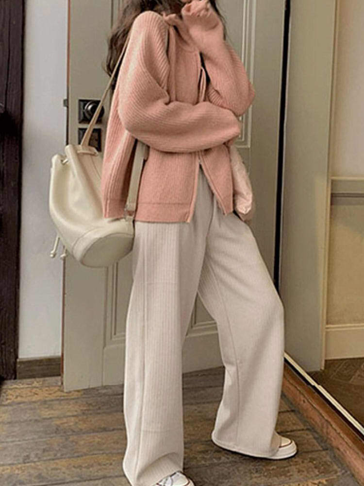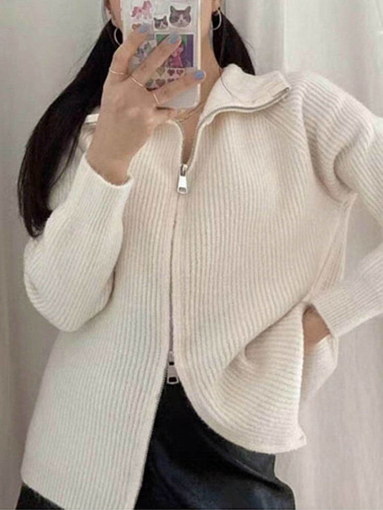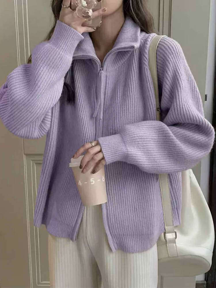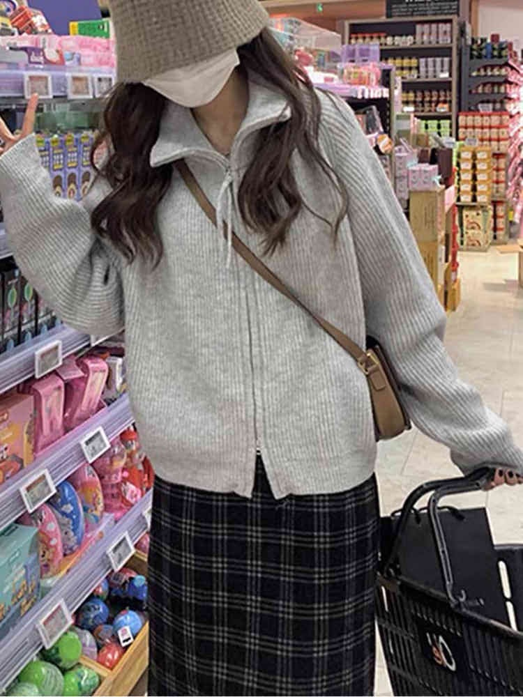 一枚でこなれ感を演出できる リブニットダブルジップカーディガン フェミニンコーデ カジュアル ガーリー かわいい ソルベカラー 大きいサイズ 韓国 CH8442