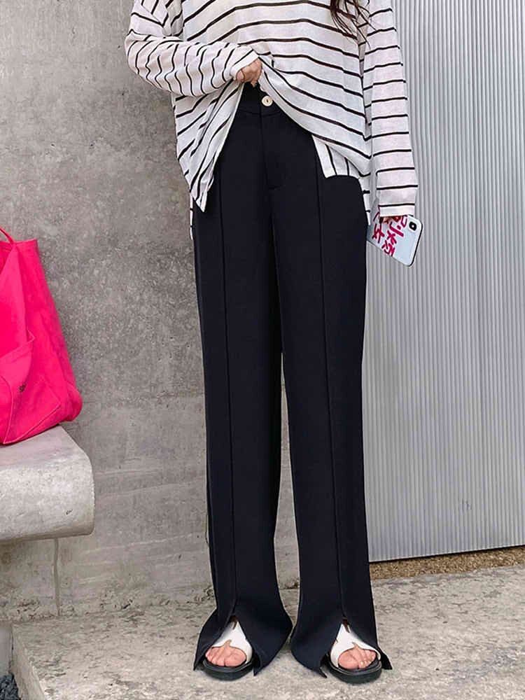 フロントスリットストレートスラックス 大人きれいめコーデ オフィスカジュアル ハイウエスト 人気 大きいサイズ 韓国 CH8493